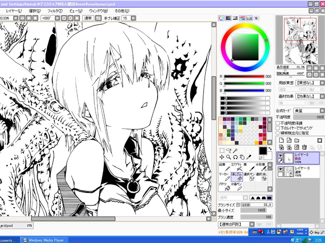 漫画的演出を抑えてみたり、字やフキダシは完全別工程にしたり、色々こすっからい悪あがきをしてまして、前回から色々変わった気がする。